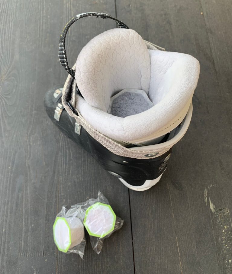 DÉSODORISANT ET DÉSHUMIDIFICATEUR pour chaussure de ski composé de média adsorbant.